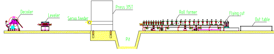 Denneproduktionslinje for kabelbakkeropnår to typer ændringer i én maskine. Du kan skifte fra kabelbakke til bakkedæksel (profil til profil) og indstille forskellige størrelser kabelbakke eller bakkedæksel fra 50 til 600 mm (bredde) og fra 35 til 100 mm (højde). Denne intelligente valseformer sparer penge, plads og tid for vores kunder.