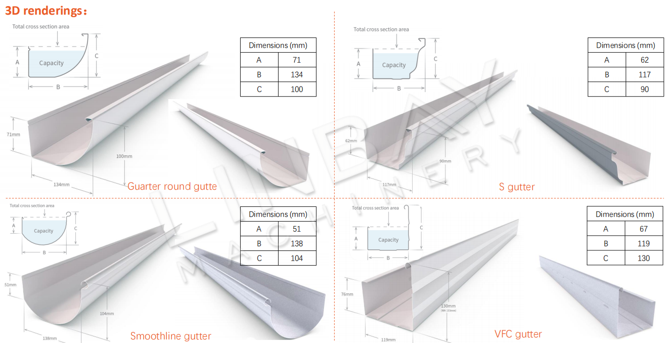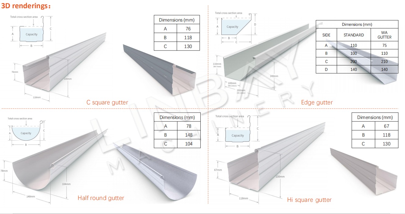Las perfiladoras de canaletas para techos de Linbay se utilizan en las empresas que producen sistemas de agua de lluvia. დამუშავებადი ესპესი არის 0.4-0.6 მმ-ის პრიმა ალუმინი, Acero galvanizado, Acero de colores, Garvalum y Cooper. Podemos ofrecer conformadores de zinguería standard, perfiladora de canal metálico, roladora de canalón de acero, acanadora de canaletas para techos, perfiladora de canaleta rectangular, roledora de canaleta estructural, o máquinas según sus perfiles.