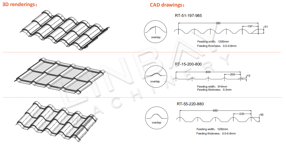 Daachsystem Rollformmaschinnhuet eng grouss Palette vunMetallblechprofilerEt enthältTrapezpaneel, Wellplack, Daachziegelpaneel, Metalldeckpaneel, Stehfalzpaneel, K-Spanpaneel a Daachdach.Seng Produkter gi wäit verbreet benotzt anDaach- a Wandsystemam Atelierbau a Wunnengsbau.