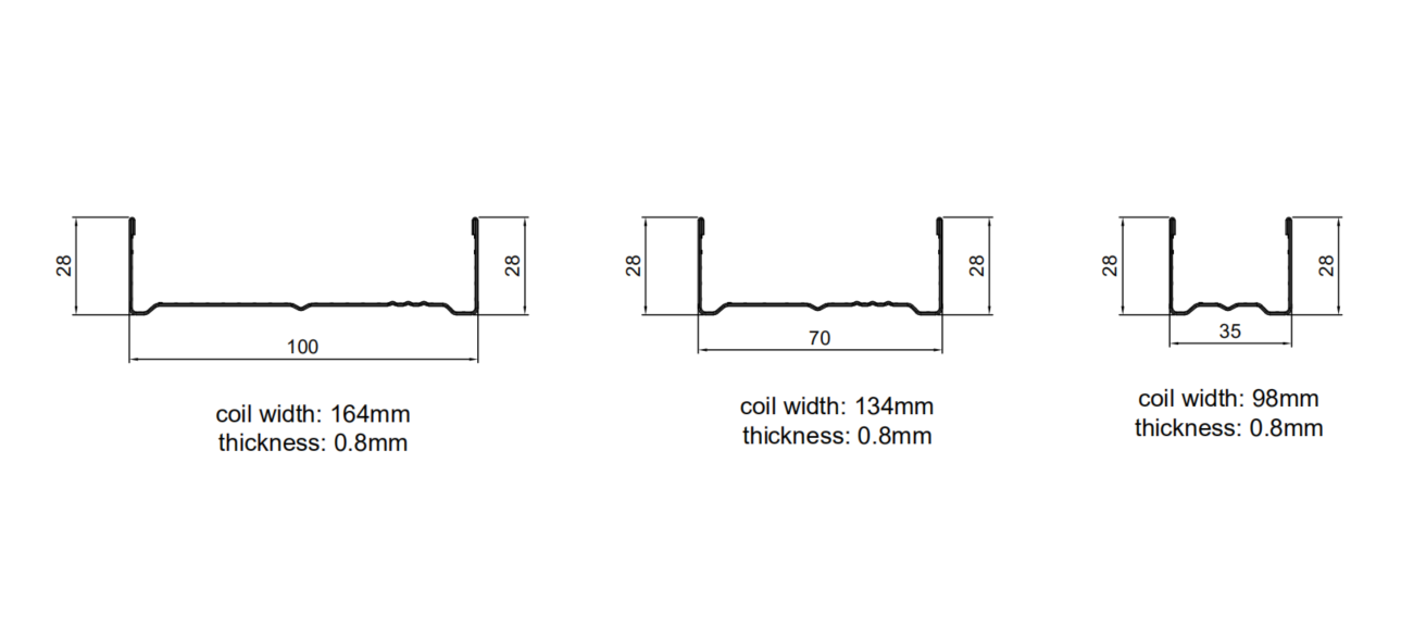 Máquina de conformação de rolos de aço de bitola leveé a máquina mais popular e seu produto incluipino, trilho, canal de pele, canal principal (canal primário), canal de transporte, ângulo de parede, ângulo de canto, cordão de borda, ângulo de parede de linha de sombra, chapéu alto, clipe, etc, nossa máquina tem ampla utilização emSistema de drywall,Sistema de tetoeSistema de pisoA espessura é normalmente de 0,4-0,6 mm ou até 1,2 mm. A matéria-prima pode ser: aço laminado a frio, aço galvanizado, PPGI, aço de alta resistência à tração. Os produtos acabados atendem às normas IBC 2003, 2006 e 2009, AISI NASPEC (S100), ICC-ES AC86 (2010) etc. Simplesmente o melhor.máquina de conformação de rolos de aço de bitola levepara seu projeto.
