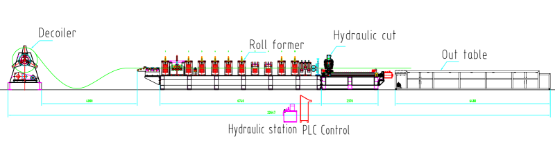 Esta máquina cumpre a automatização da produção com o corte hidráulico em movimento. (Opção: corte hidráulico para máquina parada.) Além disso, oferecemos um apilador automático quando o perfil estiver a mais de seis metros. Ao usar o codificador, você controlará perfeitamente a longitude necessária. Se necessário, servo motoreinterruptores de limite para regular o movimento. A velocidade chega a 40 m/min e pode ser ajustada de acordo com necessidades diferentes.