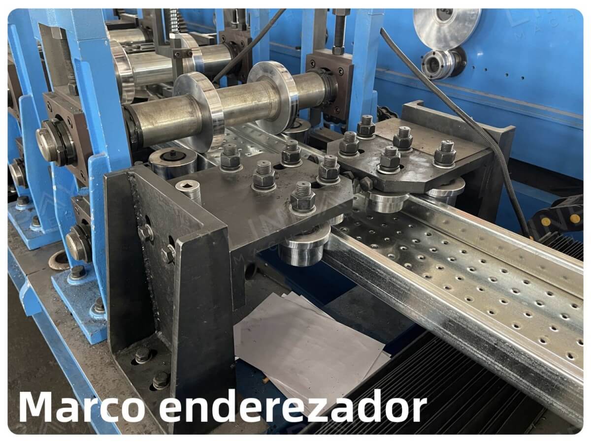 La perfiladora utiliza una estructura de hierro forjado y transmite la potencia mediante un sistema de cadenas, ofreciendo una operación extremadamentestabil, effektiv och hållbar, con una vida util superior a los diez años. El processo de conformado consta de 18 estaciones. Cada rodillo har sido cromado para mejorar su resistencia al desgaste, prevenir la corrosión y extender su duración. Además, este tratamiento ytliga incrementa la dureza de los rodillos, garantizando una mayor precisión en el conformado de los perfiles.