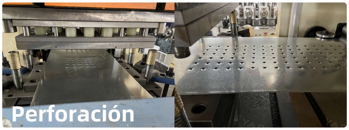 Troqueladora:La reconocida marca Yangli, con presencia en Querétaro, México, ofrece un sólido respaldo en servicios postventa para sus clientes. Como una de las principales marcas en China, Yangli se distingue por la durabilidad y fiabilidad de sus troqueladoras. El equipo está equipado con un alimentador servo, lo que asegura una alta precisión en el posicionamiento de los perforados. La velocidad de trabajo alcanza 40 golpes por minuto, ekvivalenta en una producción de 8 metros per minuto. Los orificios en los tablones metálicos cumplen funciones clave:reducción de peso, drenaje eficiente y mejora de la propiedad antideslizante.